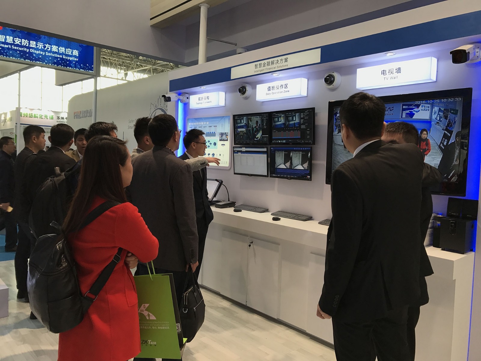 展區(qū)展出:中心監(jiān)控方案,人臉識(shí)別方案,崗?fù)ぶ凳胤桨浮?/span>